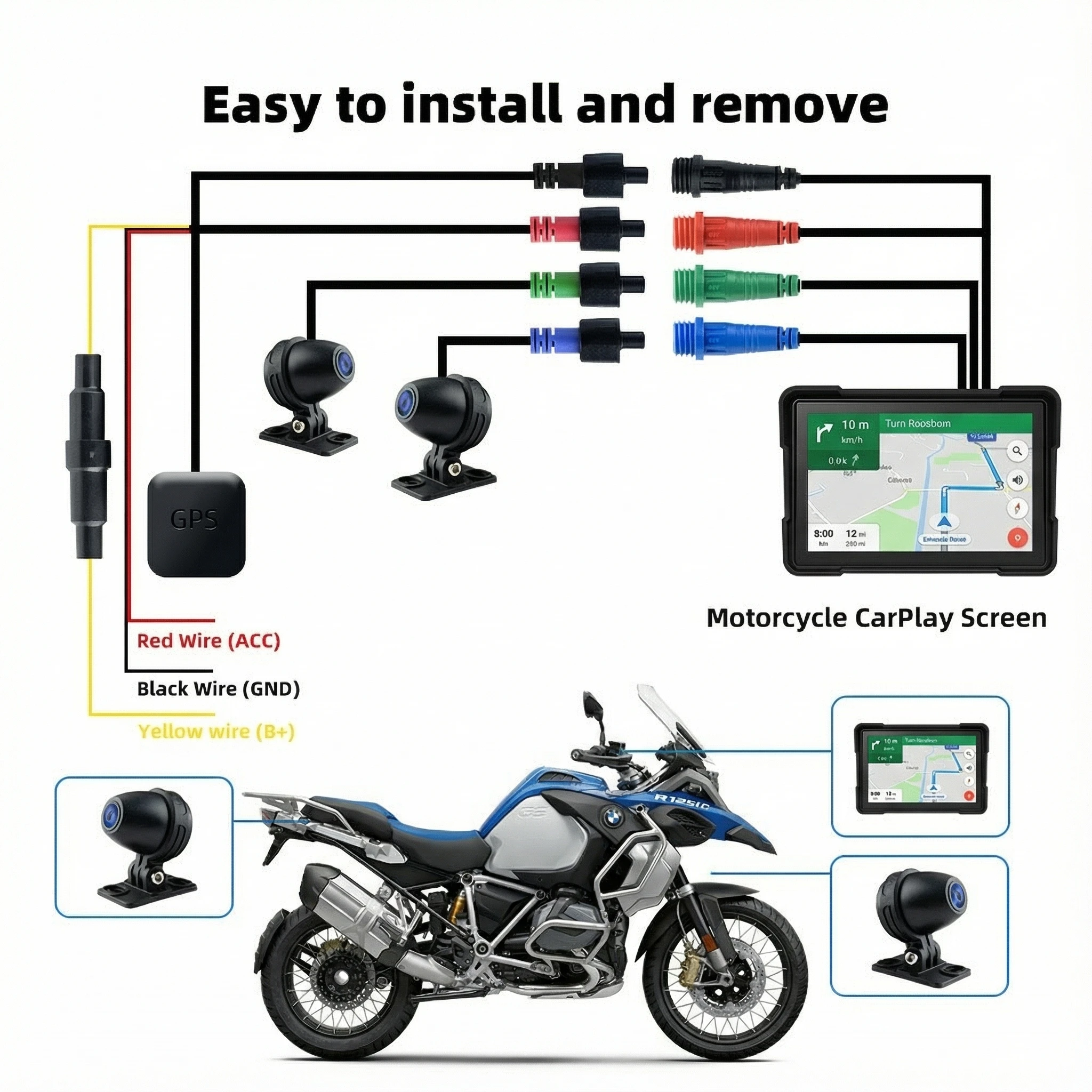 M5 Motorcycle Dash Cam touchscreen Carplay All-in-One